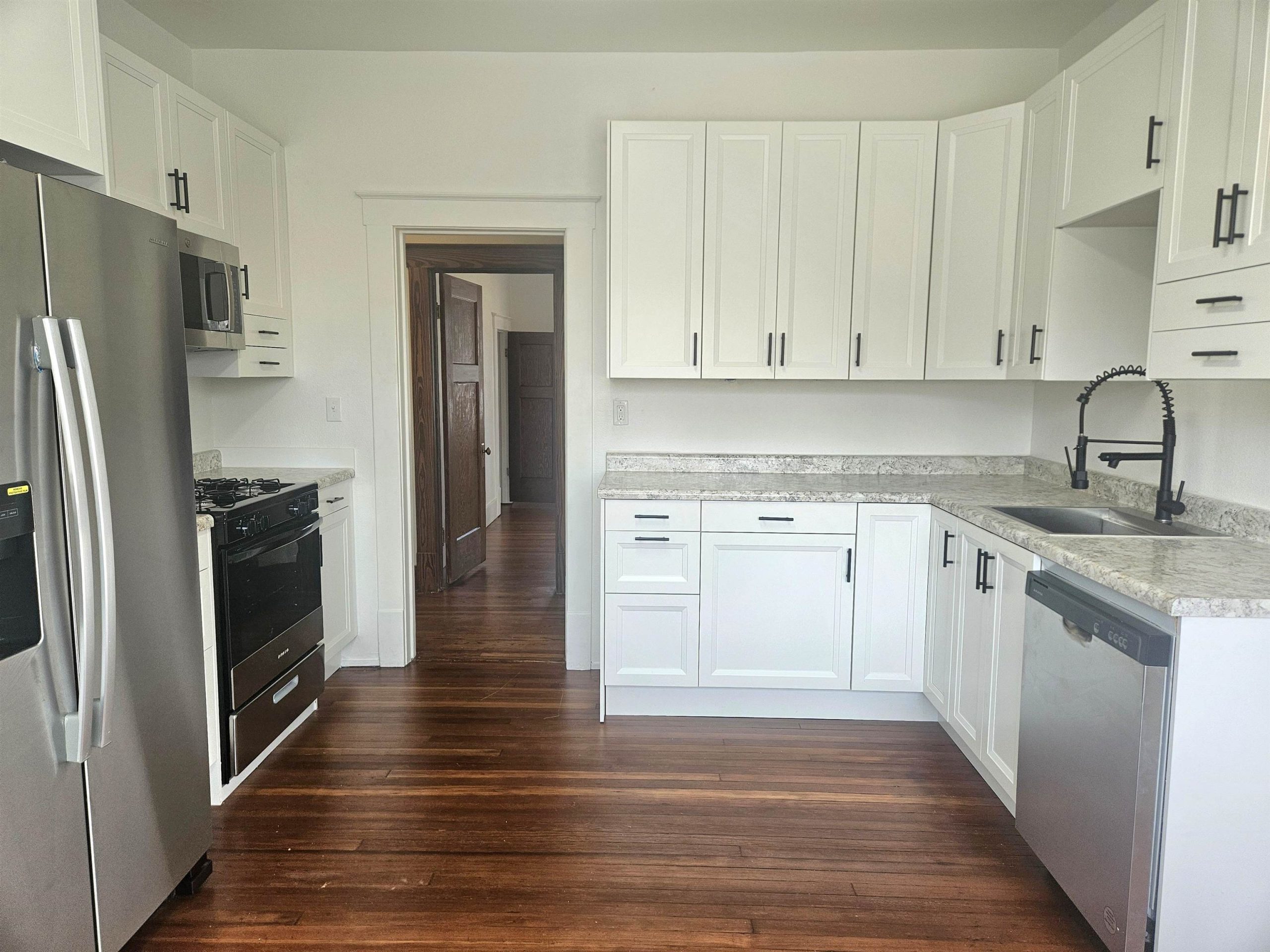 Walk into this charming 1918 home and see its beautiful hardwood floors, built in bookcases and built in buffet. You'll enjoy your beautiful brand-new kitchen with all new appliances, an updated full bathroom along with many other updates throughout. The home has 3 bedrooms upstairs along with a non-conforming bedroom downstairs. Home also has all new heating and air conditioning. This home has over 2800 sqft, sits on a large corner lot and has a detached 2 car garage.
