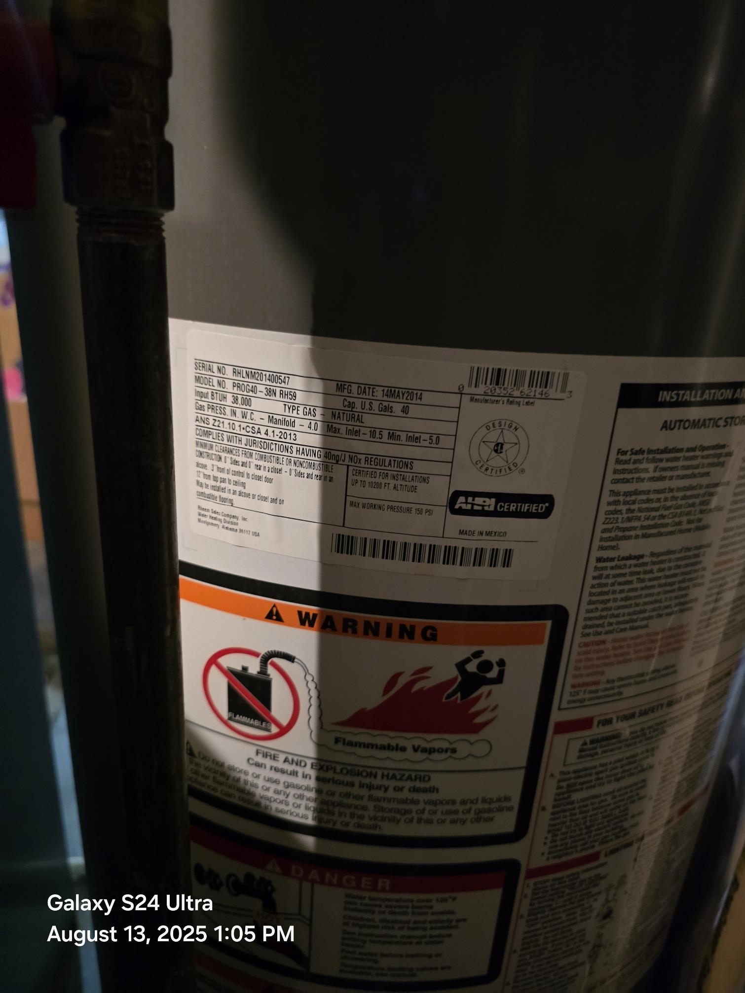 • WATER HEATER: GAS,40 GAL+