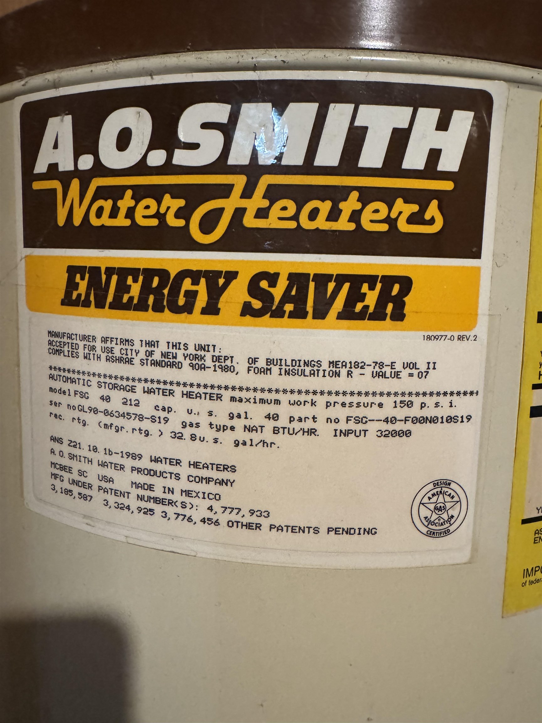 - WATER HEATER: GAS,40 GAL+